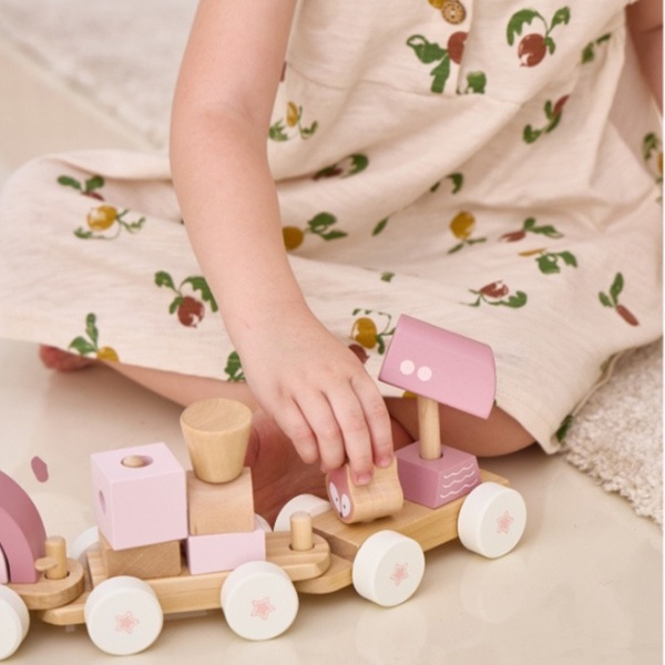 Очаровательный розовый паровозик PolarB от Viga — это не только увлекательная игрушка, но и средство для развития малыша. В комплект входят 3 вагончика и 14 деревянных блоков разных форм, которые можно свободно комбинировать, создавая уникальные конструкции. Приглушённые пастельные тона и удобные для захвата детали делают паровозик идеальным выбором для детей с 18 месяцев.