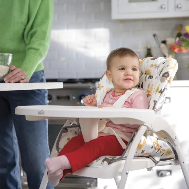 Joie Mimzy Snacker — современный стульчик для кормления. Имеет возможность регулировать наклон спинки сидения почти до горизонтального положения. Сидение оборудовано подставкой для ног и ремнями безопасности. Съемную пластиковую столешницу можно установить в одном из 3 положений или сняв закрепить на задних ножках стульчика. Модель отличается компактностью и вертикальной устойчивостью в сложенном виде.