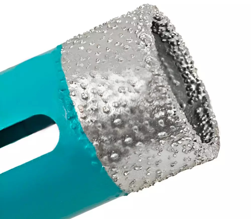 Алмазные коронки BIHUI TOP DRY – это профессиональные алмазные коронки Премиум класса, произведенные по особенной технологии вакуумно-жидкостного спекания при котором алмазы расположены в строго распределенном порядке за счет чего коронки позволяют производить быстрое и чистое сверление с минимальными сколами (на уровне коронок с гальваникой) с сохранением высокой скорости сверления и большого ресурса, даже без использования водяного охлаждения, которыми характеризуются коронки вакуумной пайки, это лучшее что есть на данным момент из коронок данного типа. Предназначены для работы с УШМ (болгаркой) при максимальных оборотах, что обеспечивает охлаждение воздухом, а также через переходник с дрелью или шуруповёртом НО!!! так как обороты у дрелей низкие и воздушный поток создаться незначительный то давайте коронкам отдохнуть или используйте дополнительное охлаждение водой или охлаждающим воском. Коронки BIHUI производятся по технологии ВЖС (Вакуумно-жидкостного спекания), что обеспечивает расположение алмазов вплотную друг к другу по всему объему алмазоносного слоя. Благодаря этому TOP DRY сверлят с высочайшей скоростью и имеют большой ресурс.