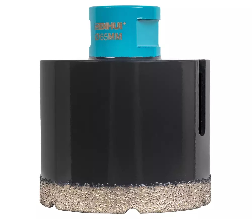 Алмазные коронки BIHUI (вакуумная пайка точной формы) – это профессиональные алмазные коронки Премиум класса, произведенные по особенной технологии вакуумно-жидкостного спекания при котором алмазы расположены в строго распределенном порядке за счет чего коронки позволяют производить быстрое и чистое сверление с минимальными сколами (на уровне коронок с гальваникой) с сохранением высокой скорости сверления и большого ресурса, даже без использования водяного охлаждения, которыми характеризуются коронки вакуумной пайки, это лучшее что есть на данным момент из коронок данного типа.