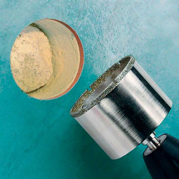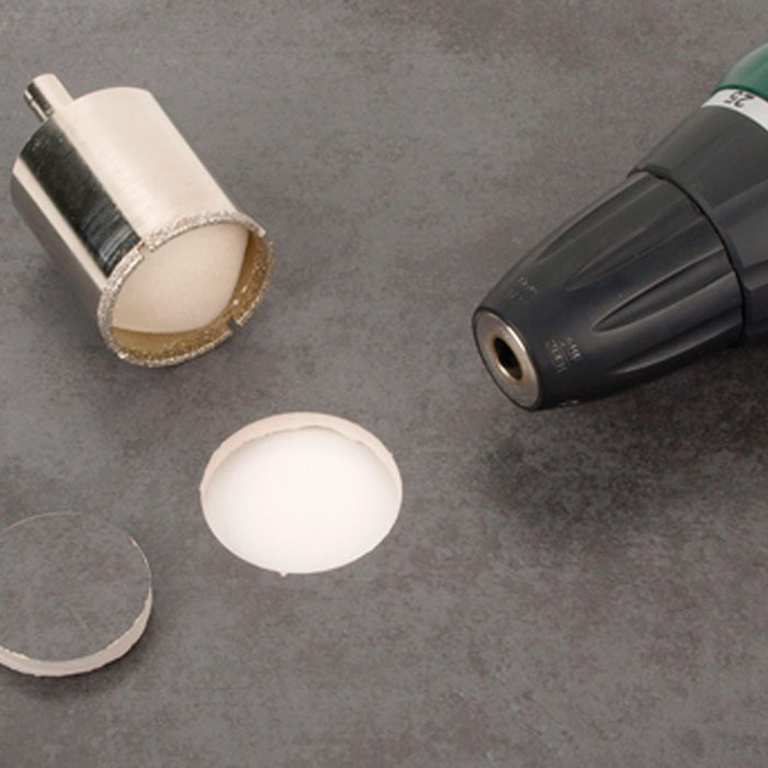 - Сверлильная коронка с алмазным напылением для выполнения точных отверстий, длительный срок службы при обработке плитки и кафеля, с круглым хвостовиком (Ø 10 мм) для использования с аккумуляторным шуруповертом, с центровочным сверлом.