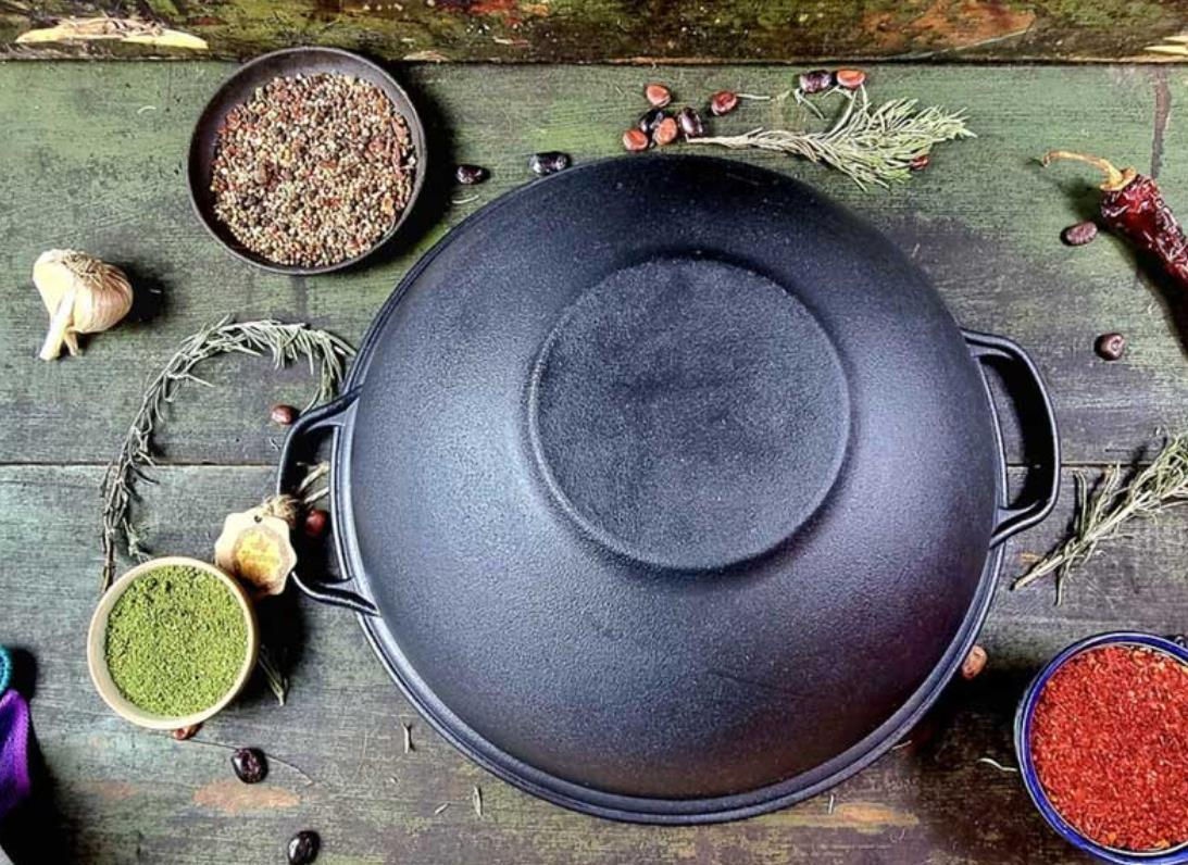 Чугунный казан Maysternya Uzbec WOK объемом 15 литров с крышкой-сковородой (модель V15CPWOK-CTG) — это универсальная и высокофункциональная посуда для приготовления блюд восточной кухни. Казан изготовлен из качественного чугуна, что обеспечивает равномерное прогревание, длительное удержание тепла и насыщенный вкус приготовленных блюд.