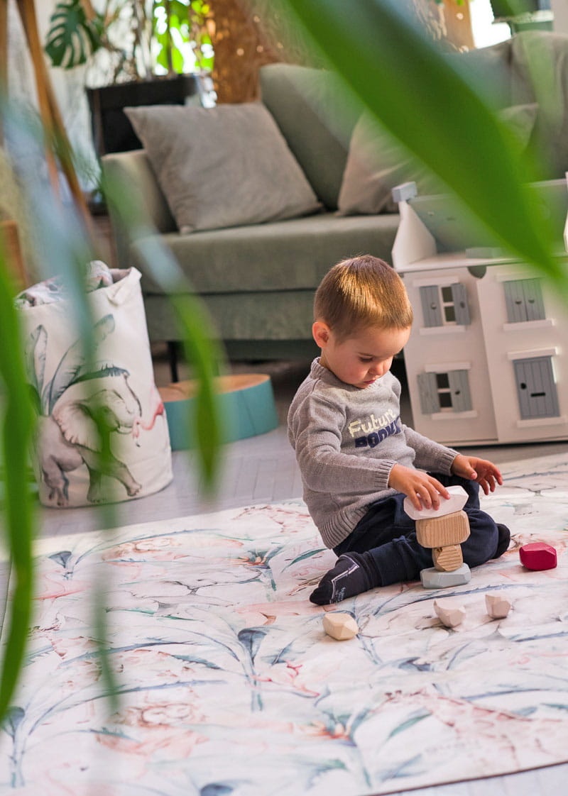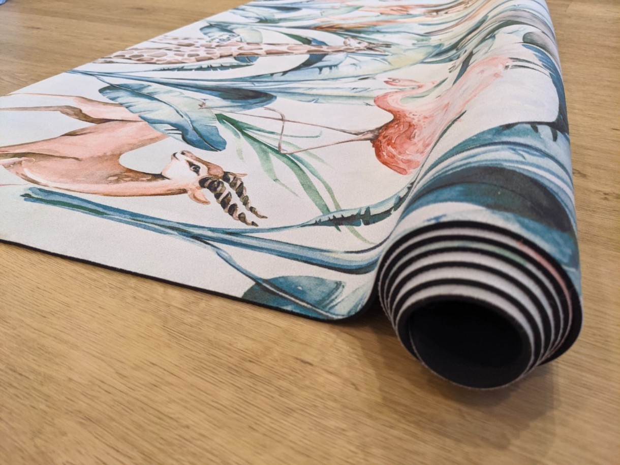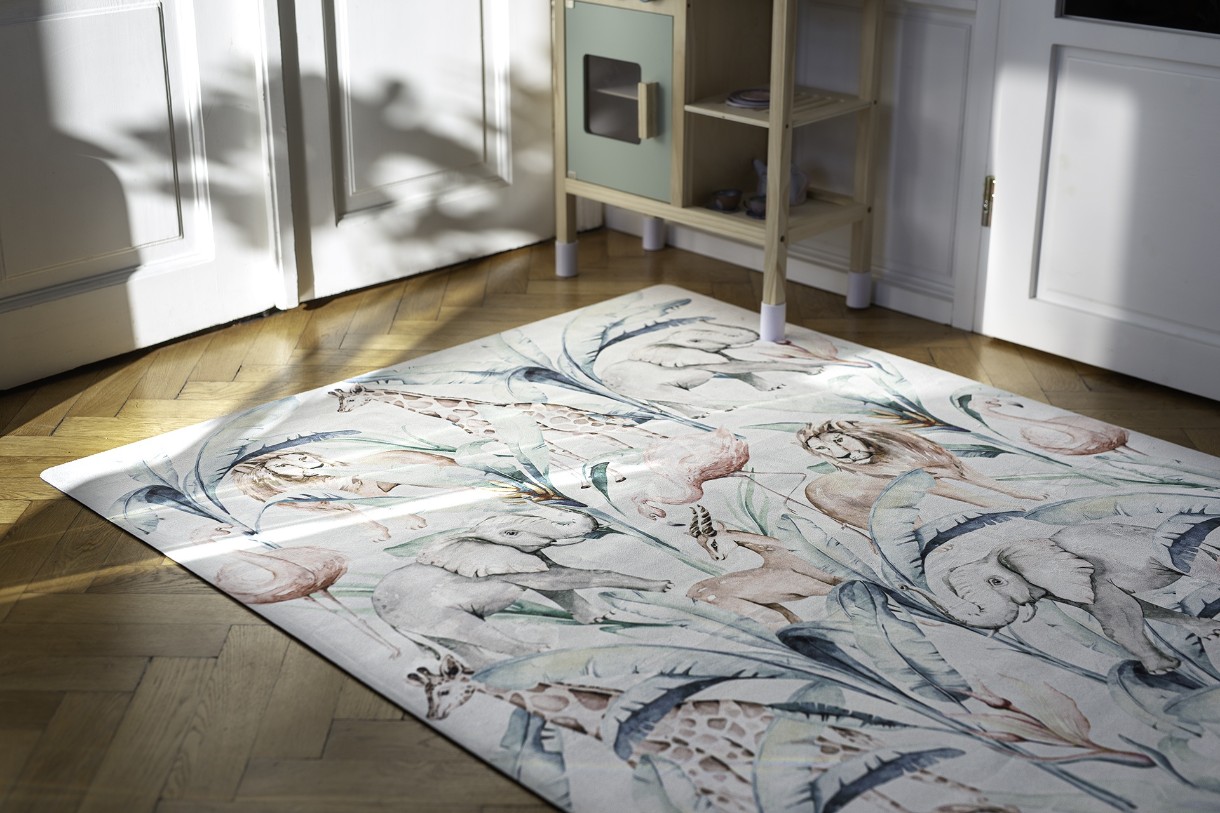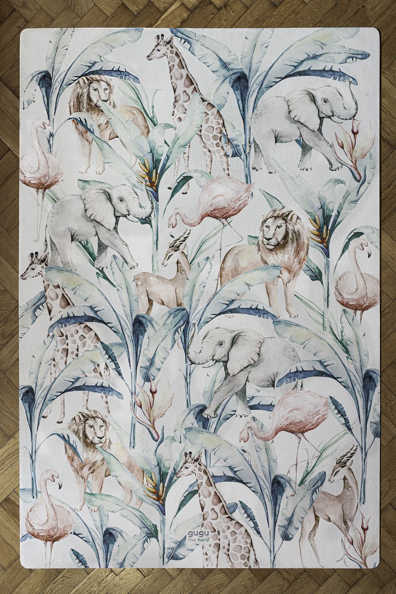 Детский коврик Gugu the Hero изготовлен из натурального биоразлагаемого каучука и слоя тонкой микрофибры, напечатанной безопасными красками. Благодаря своим свойствам слой резины в несколько миллиметров обеспечивает амортизацию. Коврик идеально прилегает к полу, ползающий или обучающийся ходьбе ребенок имеет устойчивое основание без высоких краев, о которые можно споткнуться. Нежный верхний слой придает комфорт приятного ковра.