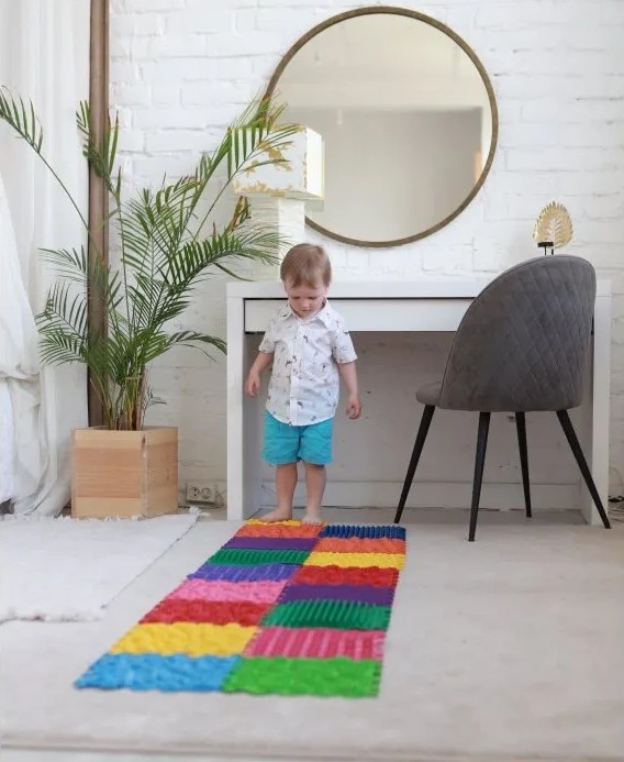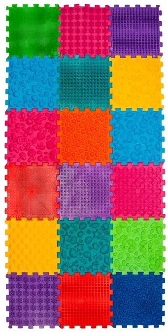Массажный коврик Ortek "Mega Mix" состоит из 18 пазлов, производится из гигиеничного, гипоаллергенного материала на основе ПВХ.