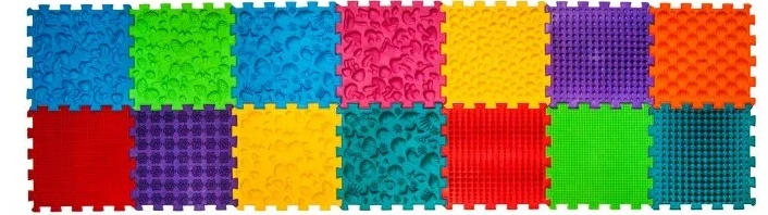 Массажный коврик Ortek "Mega Mix" состоит из 14 пазлов, производится из гигиеничного, гипоаллергенного материала на основе ПВХ.