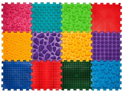 Массажный коврик Ortek "Mega Mix" состоит из 12 пазлов, производится из гигиеничного, гипоаллергенного материала на основе ПВХ.