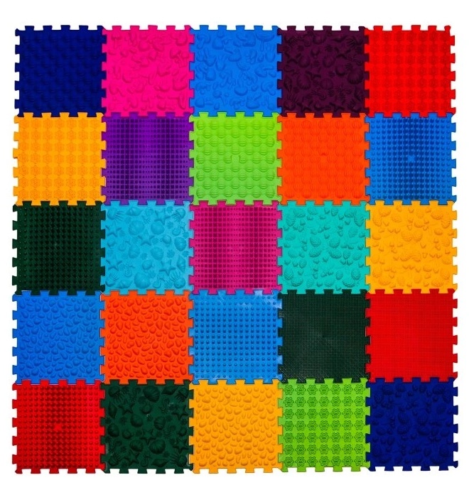 Массажный коврик Ortek "Mega Mix" состоит из 25 пазлов, производится из гигиеничного, гипоаллергенного материала на основе ПВХ.