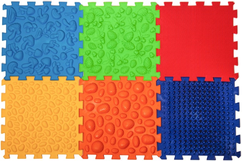 Массажный коврик Ortek состоит из 6 пазлов, производится из гигиеничного, гипоаллергенного материала на основе ПВХ.