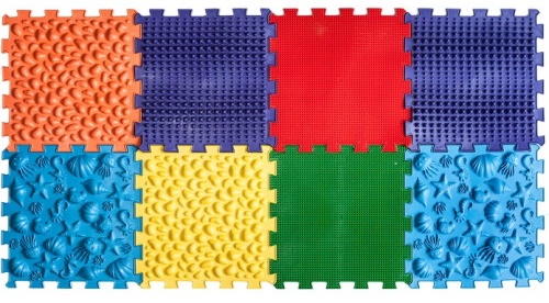 Массажный коврик Ortek "Sea" состоит из 8 пазлов, производится из гигиеничного, гипоаллергенного материала на основе ПВХ.