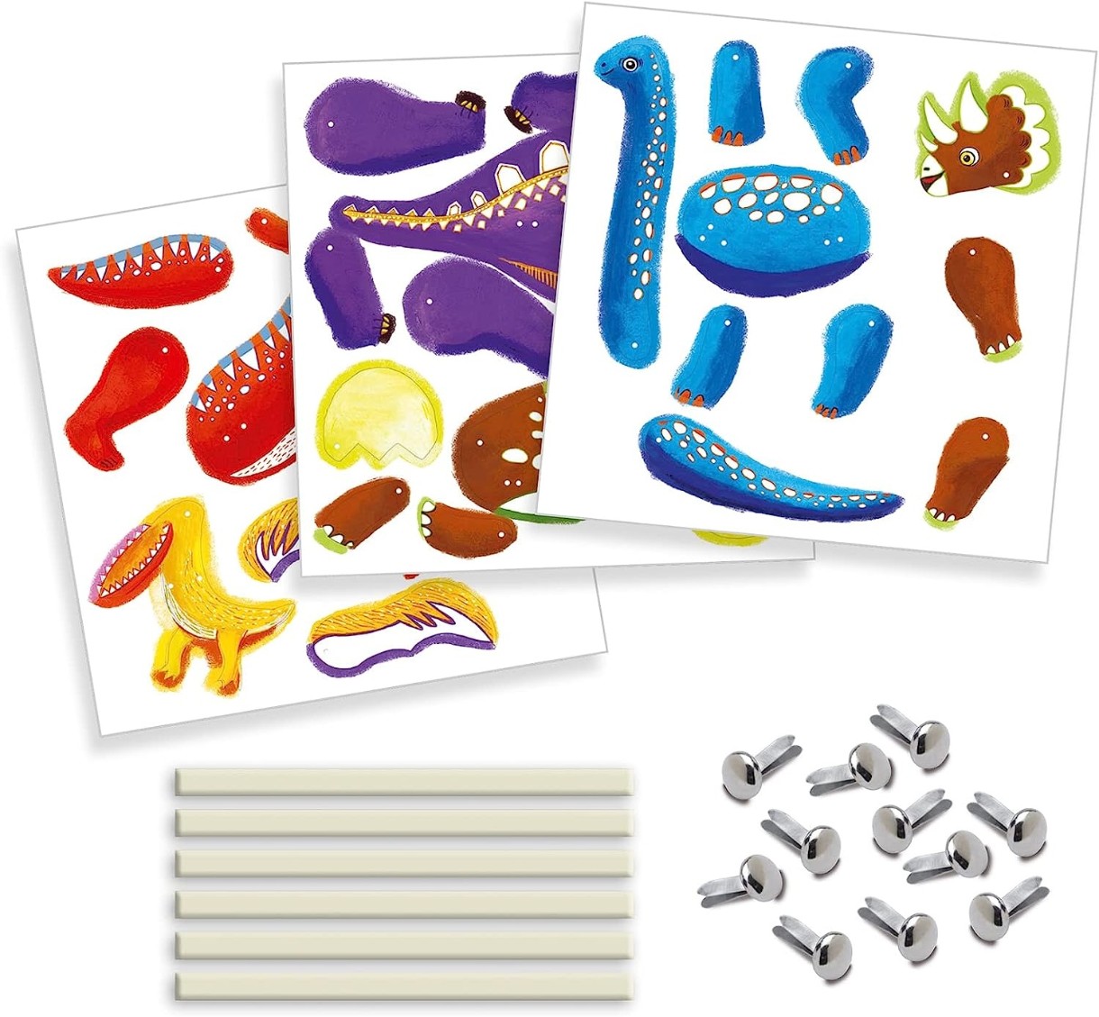 Двигающиеся фигуры «Динозавры» от французского производителя Djeco — оригинальный набор для детского творчества и увлекательная игра одновременно. Из разнообразных ярких деталей и специальных кнопок ребёнок с огромным удовольствием составит 6 фигурок динозавров, и придумав увлекательную историю, поиграет с получившимися фигурками. Лапы и крылья динозавров подвижные, что делает игру еще более динамичной и занимательной.