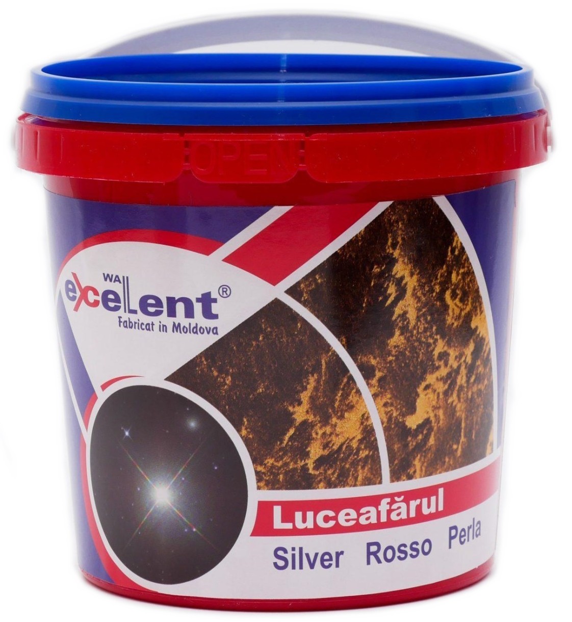 Оригинальное декоративное покрытие, применяемое для внутренних работ. «Luceafărul» почти бесцветный, но обладает перламутровым, жемчужным или розоватым оттенком. В зависимости от того, какого эффекта клиент желает достичь, фон окрашивается в желаемый цвет качественной водоэмульсионной краской. Доступен в 5 цветовых базах: Silver, Perla, Rosso, Blue, Green. Сочетание перламутра и микрошариков создает искрящийся эффект. Микрошарики как призма преломляют свет. В зависимости от изменения угла зрения, меняется его внешний вид, образуя элитную отделку.