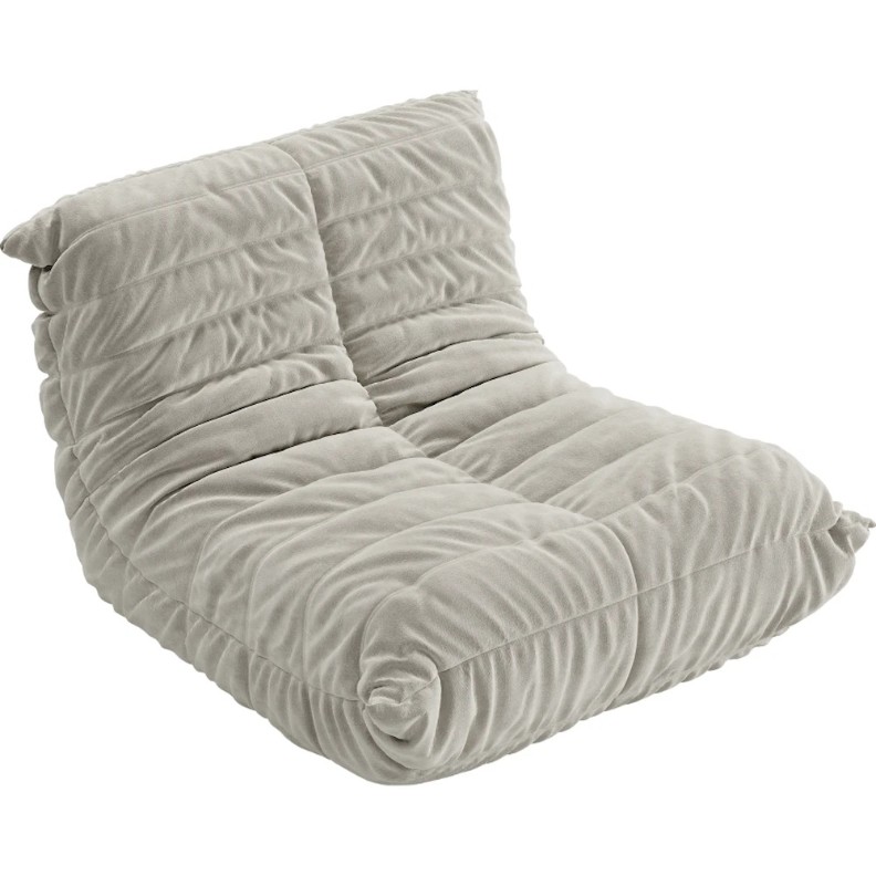 Лаунж-кресло в современном стиле, обитое мягким велюром, идеально подходит для отдыха.