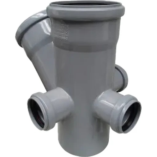 Крестовина двухплоскостная РТП (ВК) предназначена для эффективного соединения четырех трубопроводов в системах внутренней канализации, позволяя организовать сложные узлы разводки под углом 45 градусов. Данная модель выполнена из прочного серого полипропилена и оснащена пятью выходами: основными диаметром 110 мм и тремя дополнительными по 50 мм (левый, правый и тыловой). Раструбная конструкция с уплотнительными кольцами гарантирует высокую герметичность стыков и быстрый монтаж без специального оборудования.