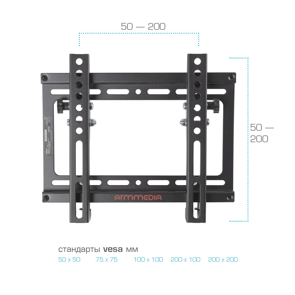 Стандарт VESA50x50, 75x75, 100x100, 200x100, 200x200 мм