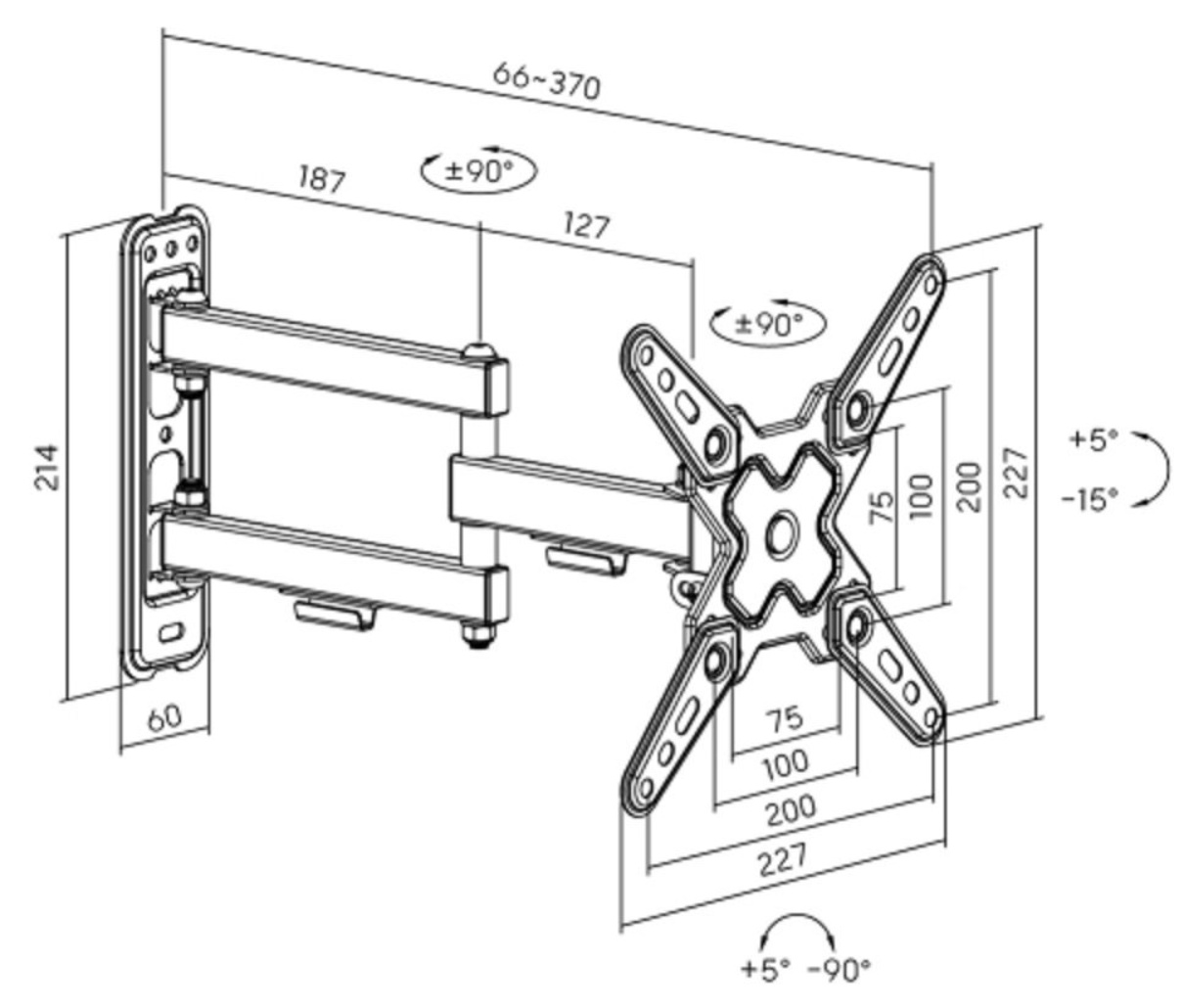 Стандарт VESA75x75, 100x100, 100x150, 100x200, 150x100, 150x150, 200x100, 200x200 мм