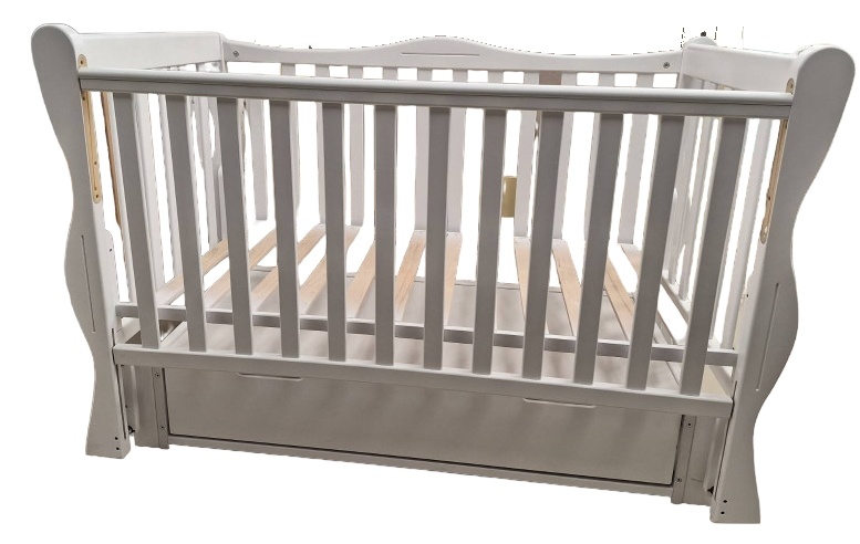 Красивая детская деревянная кроватка изготовлена полностью из древесины карпатского дерева бук. Все детали тщательно отшлифованы и покрыты экологичной краской на водяной основе, которая не вызывает аллергической реакции у детей. Планки расположены между собой на таком расстоянии, что ручка или ножка малыша не застревает между ними.
