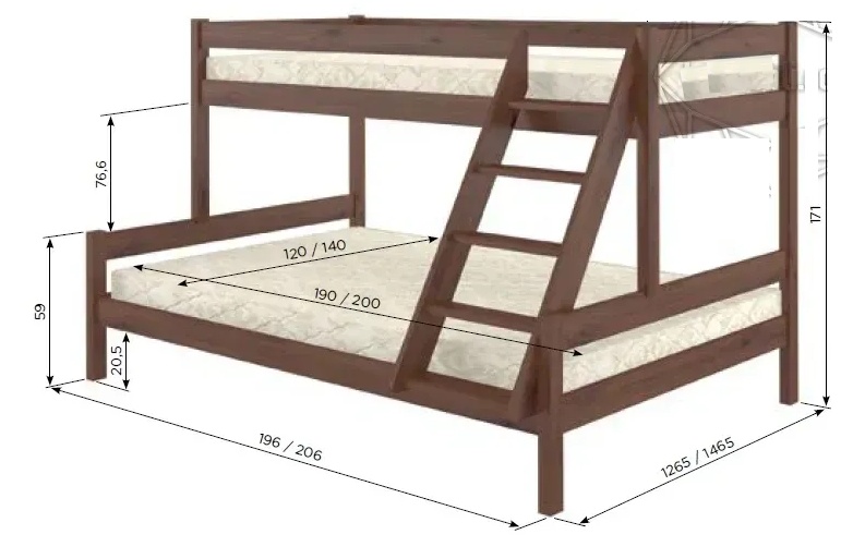 Кровать двухъярусная Атланта МебиГранд -многофункциональная конструкция, которая очень экономит свободное пространство помещения, имеет необычный, оригинальный дизайн и покорит вас удобством. За счет первого двуспального яруса и второго одноместного яруса, кровать обеспечит комфортным сном, не только детей разных возрастов, а и родителей с маленьким ребенком.