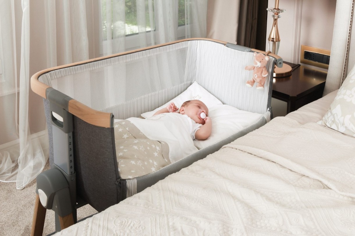 Прикроватная кроватка, позволяющая родителям спать рядом с ребенком.