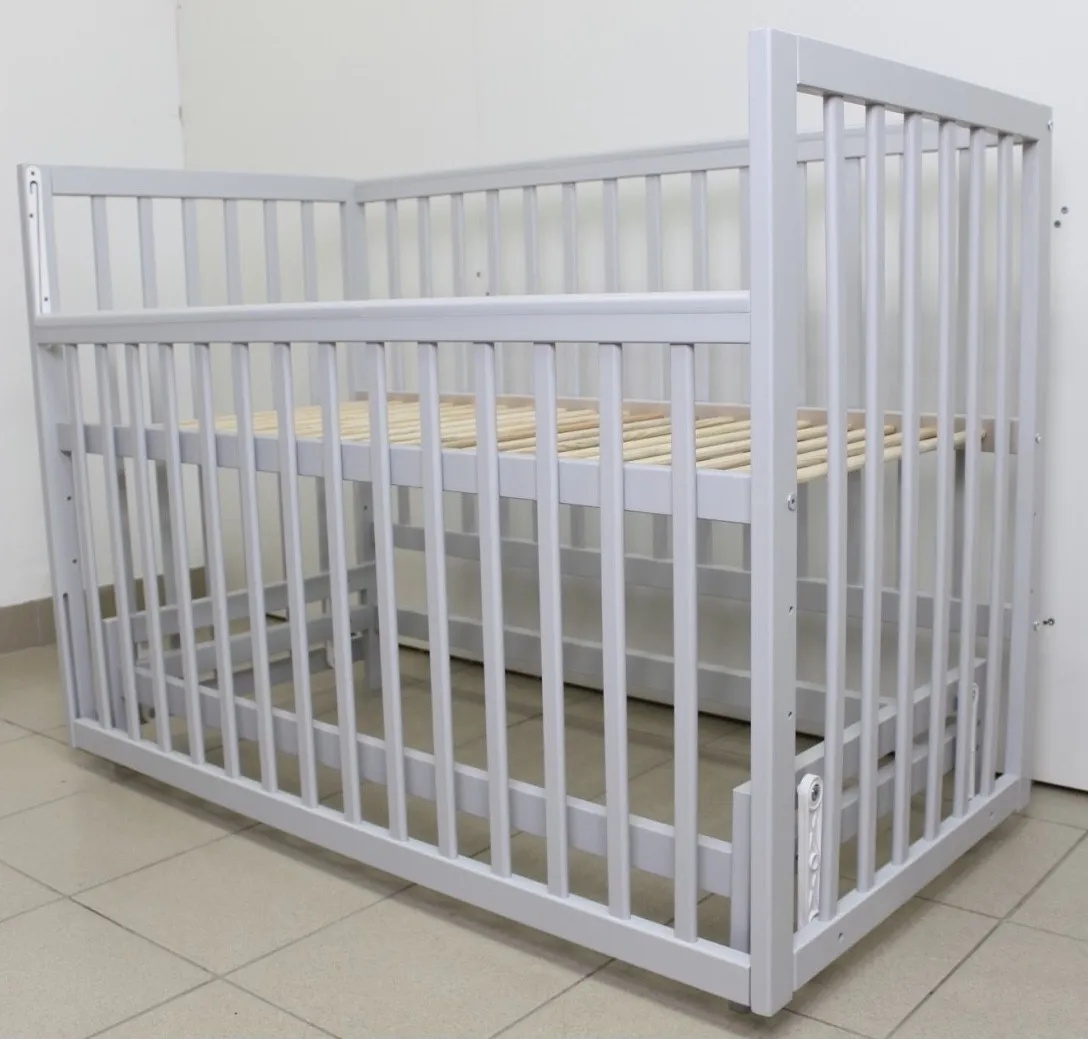 Детская кроватка Кузя выполнена из дерева и считается самой безопасной и качественной для малыша. Кроватка из массива бука и окрашена лаками и красками на водной основе, все углы закруглены, поэтому она является абсолютно безопасной для новорожденного. Для удобства его укачивания существует маятниковый механизм, также кроватка оснащена откидным бортиком.