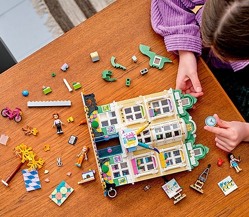 Позвольте детям проявить свои творческие способности в Художественной школе Эммы LEGO® Friends (41711), включающей 4 художественные студии. Включает в себя трехэтажное здание с классными комнатами и художественными студиями, а также красочные аксессуары и трех персонажей LEGO® Friends. Художественная студия поощряет творчество – дети, которым нравится искусство, представляют себе создание различных работ на уроках, а затем фотографируют их в студии.