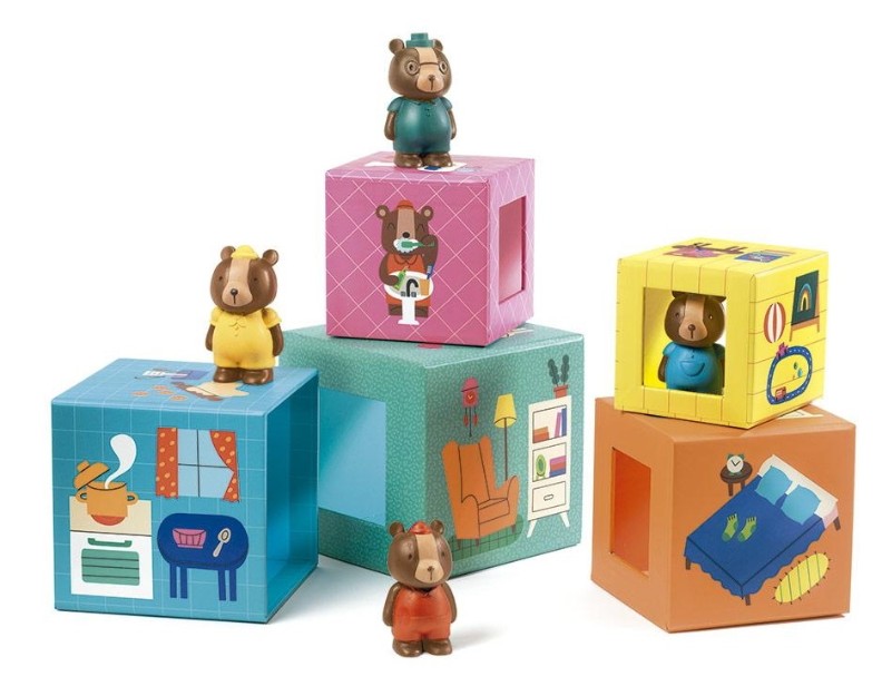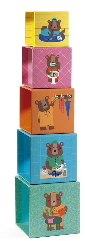 Эти штабелируемые кубики иллюстрированы различными комнатами дома, цифрами от 1 до 5, сопровождаемыми предметами, обозначающими каждую величину, или изображениями забавных медведей, выполняющих повседневные дела, и это идеально подходит для самых маленьких! Малыши открывают для себя окружающую их среду!