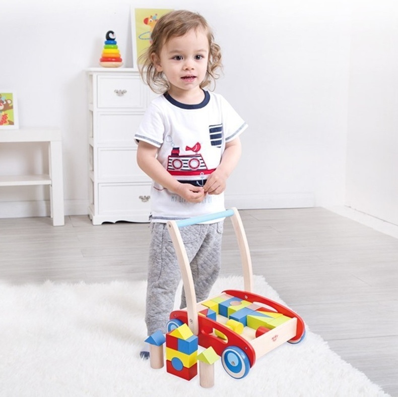 Яркая тележка от Tooky Toy поможет Вашему ребенку уверенно держаться на ногах, а кубики помогут развить мелкую моторику, воображение, с их помощью можно построить сказочный дом или фантастический замок. Все детали игрушки сделаны из дерева. Этот большой конструктор идеален для самых маленьких. Детали конструктора удобно складываются в специальную тележку, что позволит малышу перевезти конструктор в любую часть дома. Высота до ручки тележки 40 см. В наборе 22 кубика разнообразных форм и цветов. Для детей от 1 года.