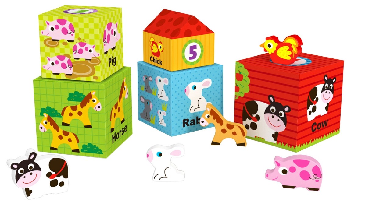 Игровой набор Ферма является отличной альтернативой традиционным головоломкам и кубикам. Дети легко сочетают обучение с игрой с красочными кубиками, полными иллюстрациями. Кроме того, в набор входят деревянные фигурки животных, для которых кубики становятся домиком! Ребенок сам решает, какую конструкцию он построит. Кубики иллюстрированы логически, развивая восприятие ребенка, например, на самом большом кубе находится большая коровка и номер 1, а на самом маленьком — маленькая курица и номер 5. Ребенок может легко выучить числа, потому что на рисунке количество животных, соответственно числу. Помогает различать животных и показывает, где они прячутся. На коробках написаны английские названия животных, что может помочь вам выучить английский язык. Ребенок может повеселиться и представить себе жизнь на своей ферме, а также проявить творческий подход, придумывая истории о животных на ферме. Игрушка не имеет острых краев и окрашена в нетоксичные краски, которые безопасны для вашего ребенка.