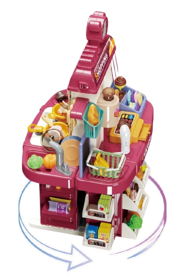 Универсальный образовательный набор, предназначенный для изучения ролевых игр в игровой среде, вдохновленной реальной жизнью. Этот набор сочетает в себе две популярные игровые темы - кухню и магазин. В набор входит 83 необходимых элемента для игры.