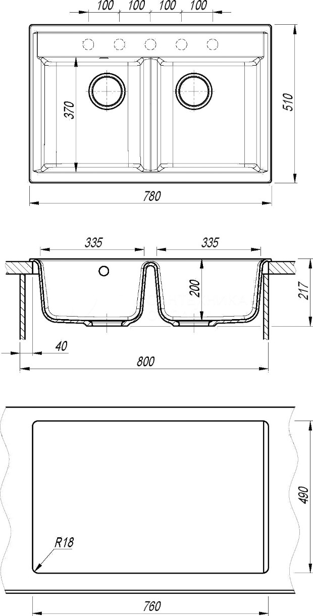 Размер мойки780х510х217 мм