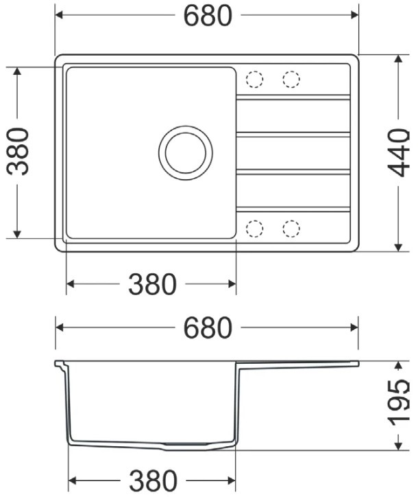 Размер мойки680х440 мм