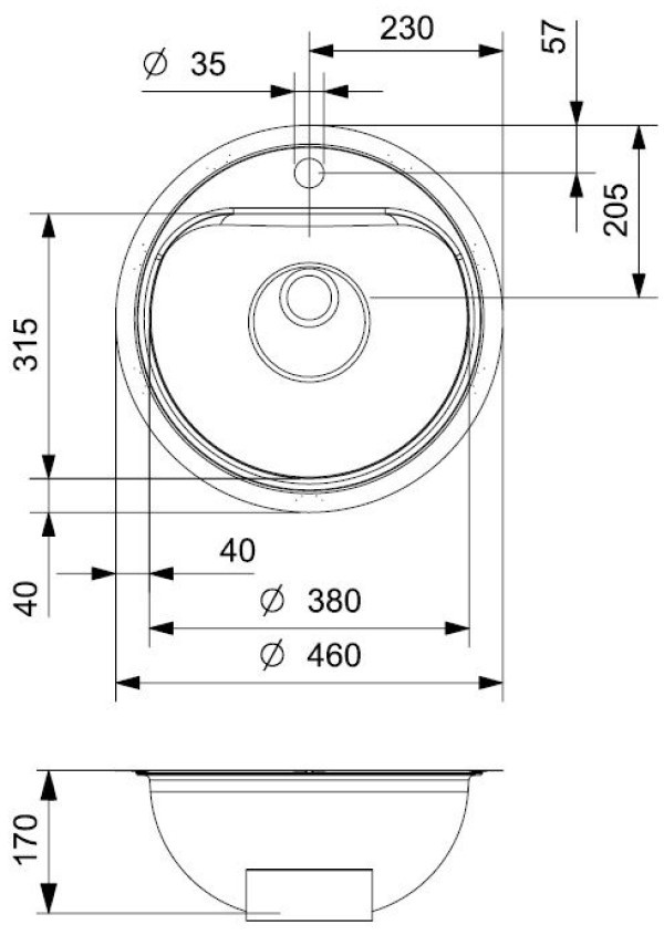 Размер мойки460х170 мм