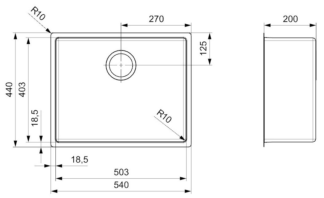 Размер мойки540x440 мм