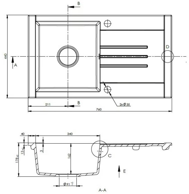Размер мойки760х440 мм