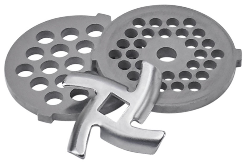 Особенности и функции2 диска для мясорубки из нержавеющей стали (5 и 7 мм), кувшин блендера из высокопрочного стекла объемом 1,5 л