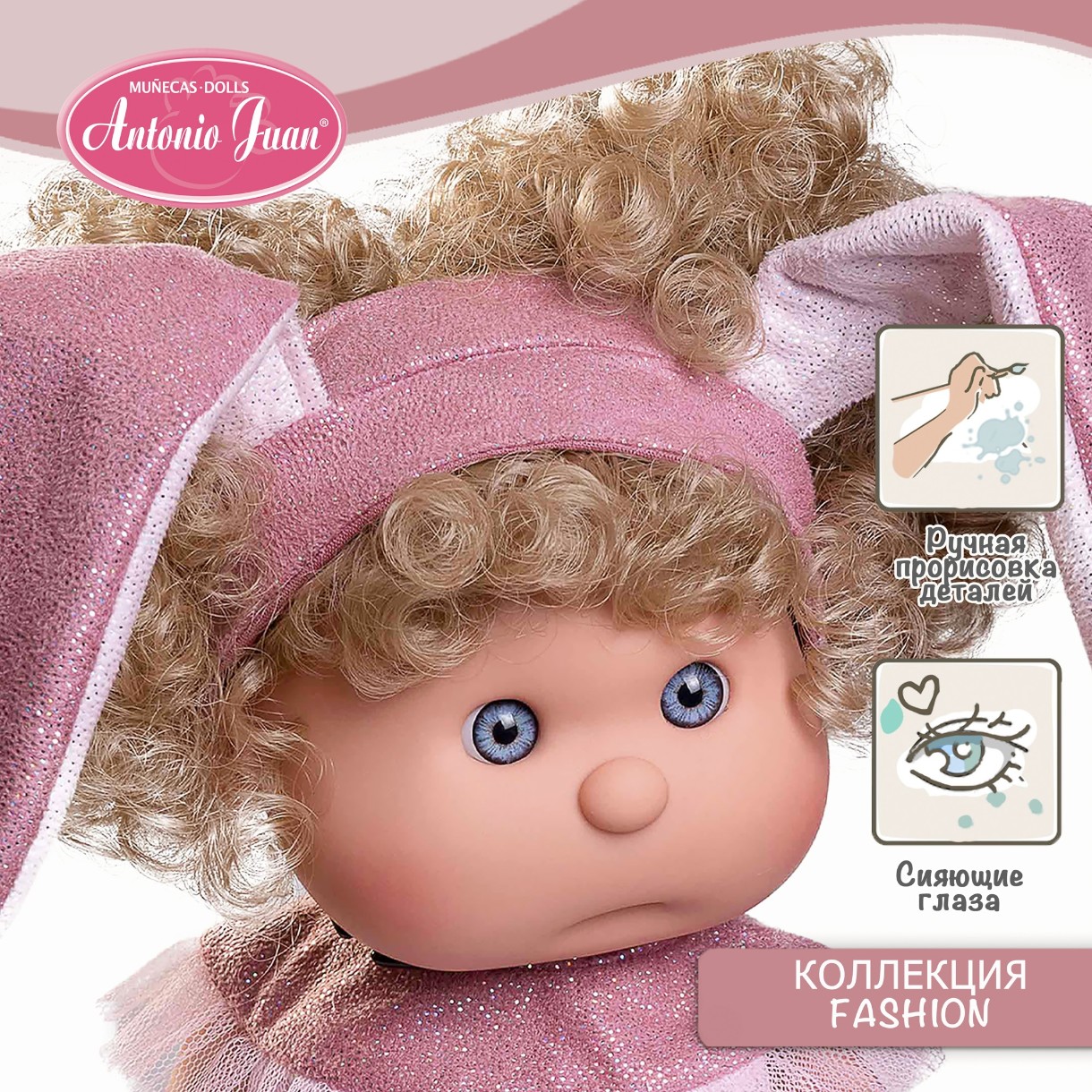 Кукла девочка Ирис в образе зайчика - виниловая кукла размером 38 см испанского бренда Мунекас доллс АНТОНИО ХУАН. Эта виниловая кукла с милым лицом и светлыми, мягкими кудряшками, которые маленькая модница сможет заплетать в красивые прически. Ирис станет любимой игрушкой вашей принцессы. Стильный наряд Ирис состоит из рубашки, шортиков и ботиночек розового цвета. Повязка с ушками и модные очки дополняют неповторимый образ зайчика. Все предметы одежды и аксессуары легко снимаются и одеваются, позволяя вашей малышке менять образы куколки хоть каждый день. Благодаря качественным материалам и великолепному исполнению куклы, она будет радовать вашу дочь на протяжении долгого времени. Кукла Ирис - новинка серии Fashion, которая обязательно станет хитом в коллекции игрушек вашей девочки и подарит ей массу радостных моментов. Не упустите возможность сделать удивительный подарок своему ребенку!