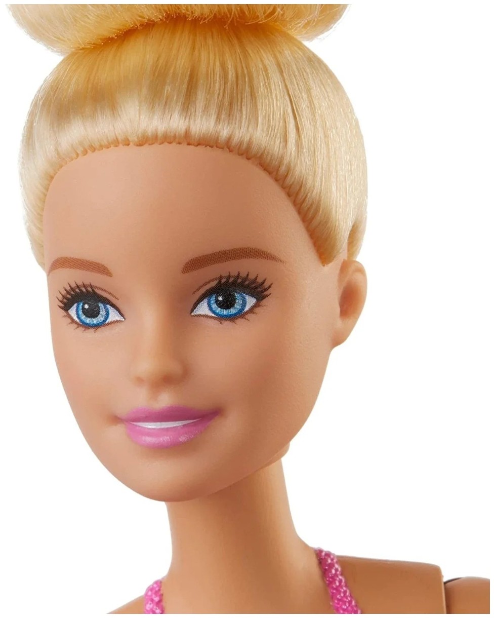 Кукла Barbie Балерина блондинка в розовой пачке — просто замечательный подарок для маленькой поклонницы балета. Куклы из серии «You can be» могут показать ребёнку, насколько много в мире разных интересных профессий и помогут родителям увидеть увлечения и задатки девочки. Барби одета в розовую пачку, белые колготки и пуанты (не снимаются), может двигать руками и ногами. Светлые волосы куклы можно заплетать в чудесные причёски.