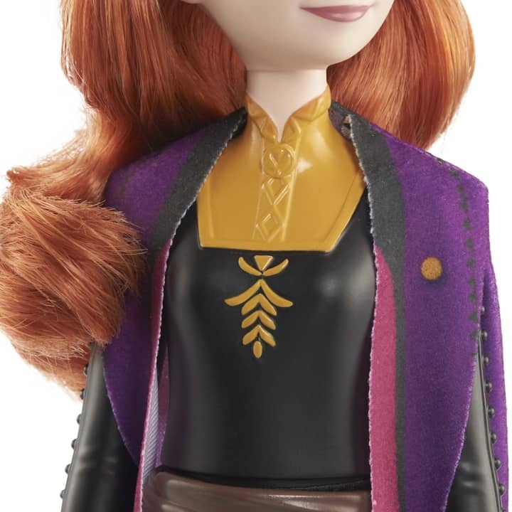 Познакомьтесь с Анной, вдохновленной бесстрашной и решительной героиней диснеевского мультфильма «Холодное сердце 2»! Эта подвижная модная кукла Анна одета в черно-фиолетовый дорожный костюм со съемной мягкой накидкой, юбкой и сапогами. В своем фирменном наряде из фильма эта кукла Анна готова отправиться в путешествие, чтобы спасти королевство!