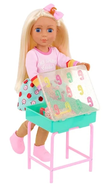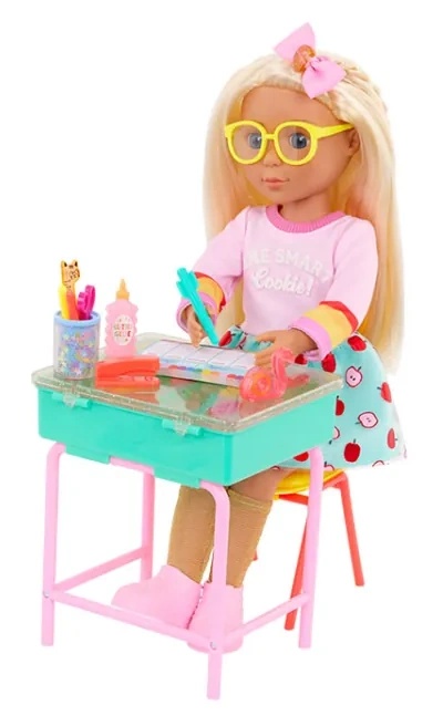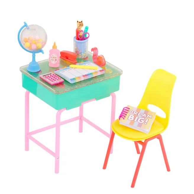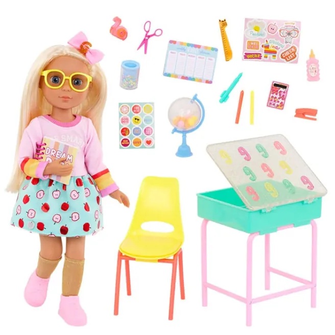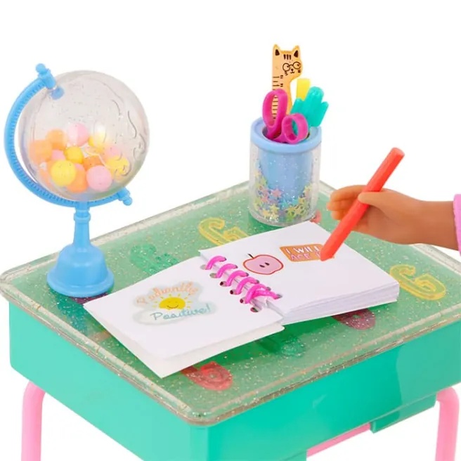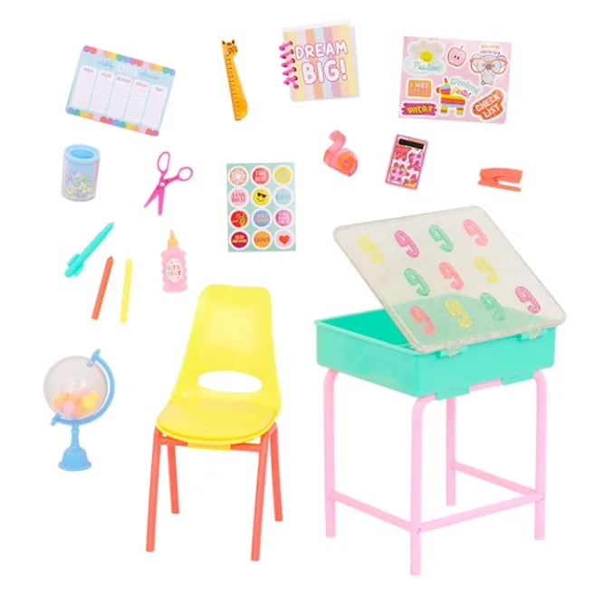 Школа рулит с игровым набором «Мэллори и школьная парта» от Glitter Girls! Каждый предмет в этом наборе из 25 деталей поражает яркими цветами и сверкающими деталями.