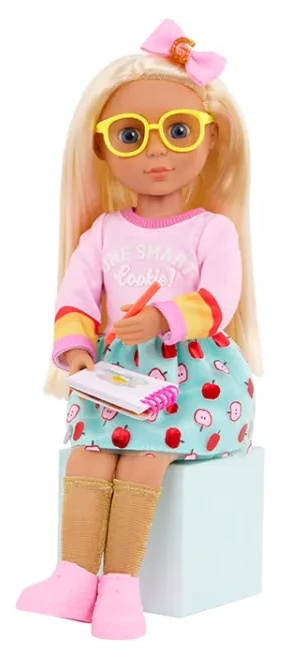 У Мэллори ярко-голубые глаза, мягкие светлые волосы и красочная кукольная одежда - идеальное решение для того, чтобы сдать все экзамены. Хотите изменить ее образ? Нет проблем! Как и вся одежда Glitter Girls, наряд Мэллори имеет легко открывающиеся застежки, так что дети могут сочетать его с другими 14-дюймовыми куклами. Кроме того, она гнется, поэтому может сидеть на своем стуле и поднимать руку, когда у нее есть вопрос!