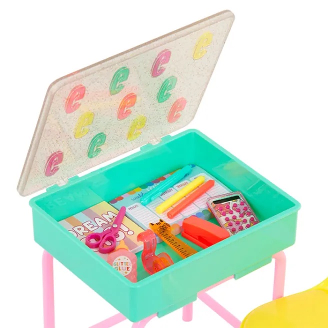 В этом наборе школьных кукол есть множество забавных аксессуаров, способствующих развитию воображения: от сверкающего глобуса до набора наклеек. Когда занятия закончатся, откройте парту и положите все вещи внутрь!
