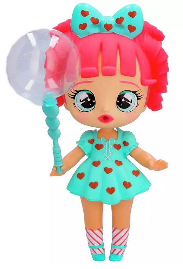 В наборе с куклой есть аксессуары и шарики, которые куколка может надувать! Необходимо вставить палочку-трубочку одной стороной в рот куклы, а к другой стороне прикрепить один из шариков. Сдавливайте голову куколки с двух сторон, и смотрите, как надувается шарик! Просто невероятно! У шариков необычная и забавная форма. Соберите их все! Коробку можно использовать как мини-комнатку для куклы. В коллекции 6 разных ярких куколок. Какая Вам нравится больше?