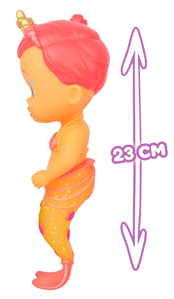 Если опустить куклу в теплую воду, некоторые элементы хвоста поменяют цвет!