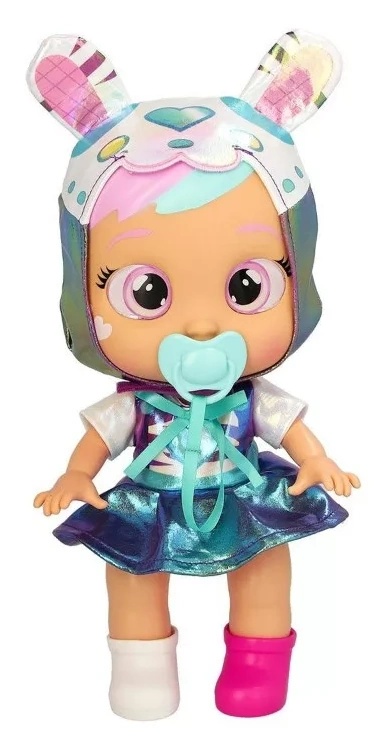 Cry Babies плачут настоящими слезами, издавая при этом реалистичные звуки детского плача. Чтобы кукла заплакала, просто налейте воды в специальную ёмкость, расположенную на затылке, и нажмите кнопку внизу, или включите куклу и выньте соску изо рта. Когда плач вам надоест, просто верните соску ей в рот, и она мгновенно успокоится.