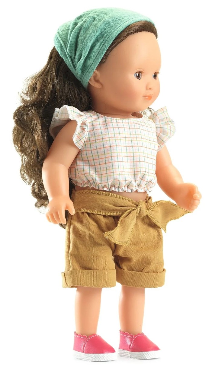 Жозефина — стоячая кукла-модница ростом 32 см. Ее длинные каштановые волосы легко укладывать. Ее лицо, руки и ноги сделаны из мягкого на ощупь винила. Она закрывает свои красивые карие глаза, когда вы кладете ее на спину.