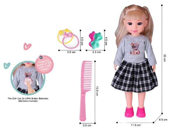 Эта очаровательная кукла Мэнди станет любимой игрушкой для вашего ребенка! Кукла оснащена звуковым эффектом, что делает игру с ней еще более увлекательной. В набор входят аксессуары для ухода за куклой, что поможет ребенку почувствовать себя настоящим заботливым родителем. Кукла работает от 3 батареек LR44, которые уже входят в комплект.