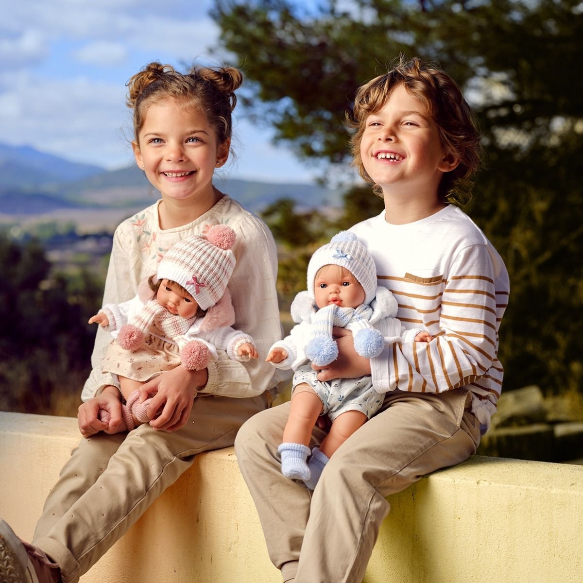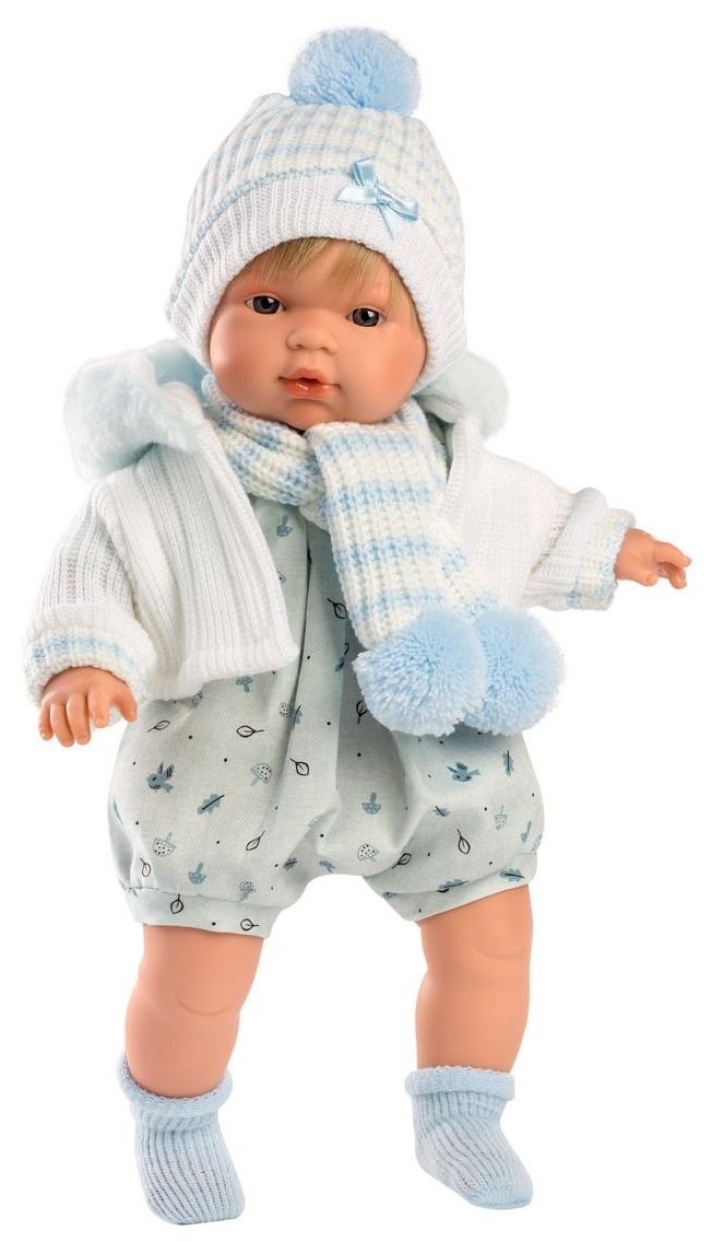 Плачущая кукла Саша 38 см одета в синий комбинезон, белую куртку, шапку с помпоном, носки и шарфик с помпонами. Круглое лицо, крошечные ушки, нос и рот делают куклу похожей на настоящего младенца. Ее любимая соска очень важна для нее, поэтому, когда мы ее заберем, она будет плакать и звать маму. Кукла упакована в декоративную картонную коробку. Мы любим испанских кукол Llorens!
