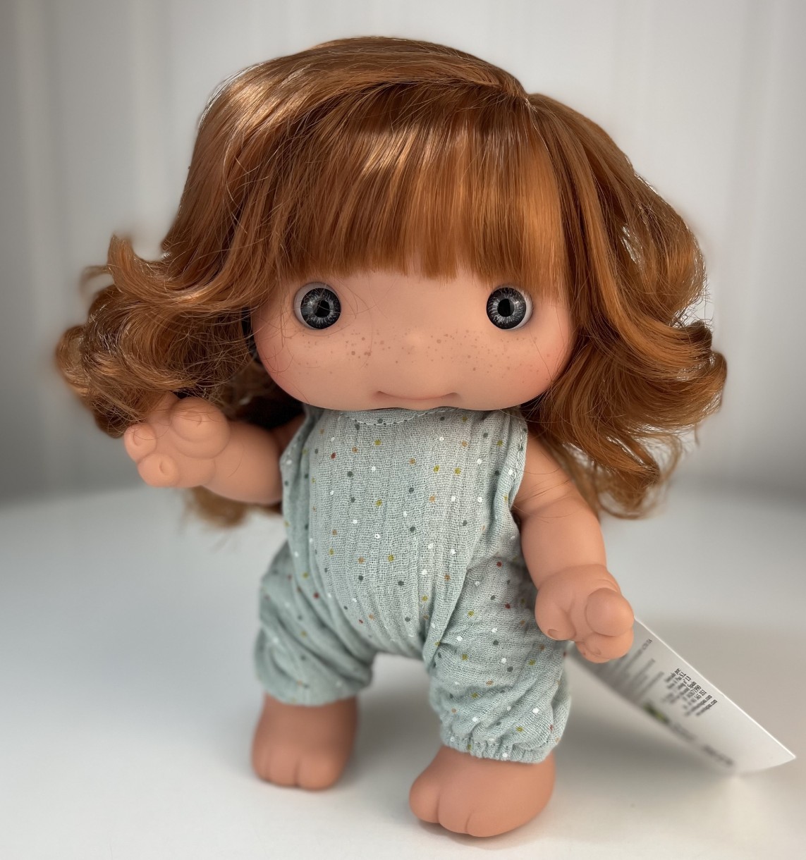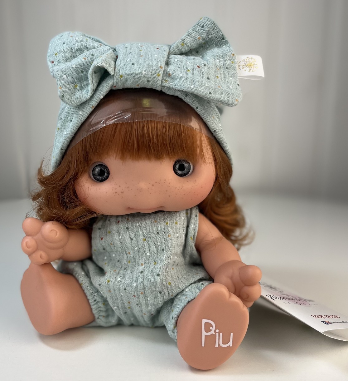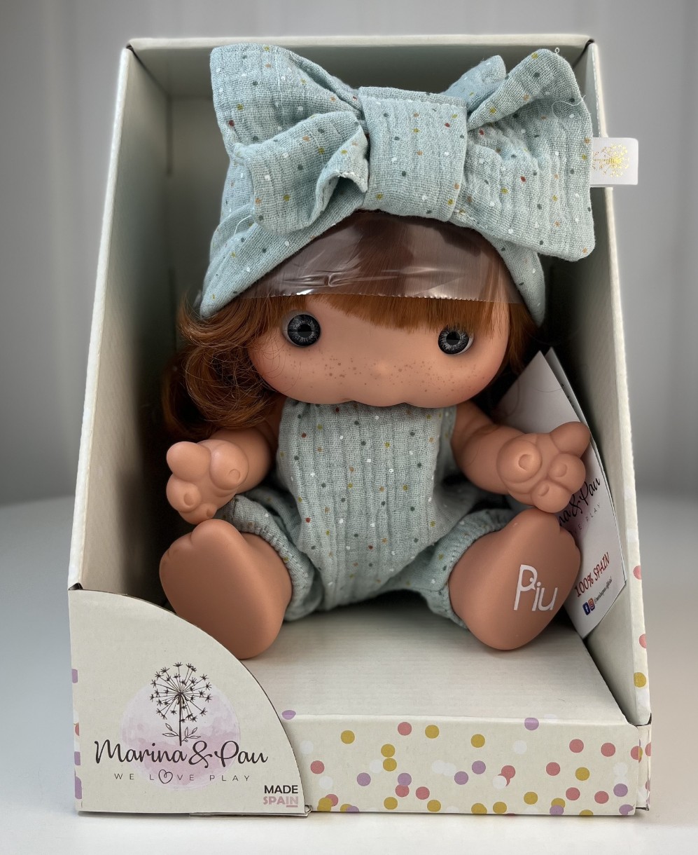 Очаровательная малышка – кукла для девочек Пиу (Piu) – новинка от испанского производителя Marina&Pau! Пиу – забавная маленькая девочка с широко открытыми глазами и доброй улыбкой. Порадуйте вашего ребенка чудесным подарком! Кукла-пупс Пиу станет любимой игрушкой для любой девочки, подарит радость, множество новых игр и море эмоций. Кукла выполнена полностью из винила. Волосы густые, прошитые по всей голове. Глазки акриловые, без ресниц, не закрываются. У куклы подвижные руки, ноги и голова. Без половых признаков. На кукле надет легкий летний комбинезон и шапочка с бантом.