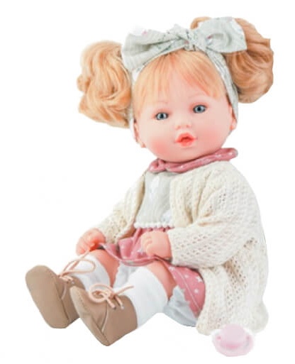 В комплекте шарф, тапочки и соска. Виниловые конечности и мягкое тканевое тело.
