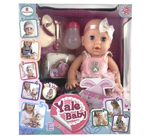 Этот пупс умеет делать практически все – кушать специальную кашу, пить из бутылочки, после чего сходит на горшок. В комплект с пупсом в набор входит памперс, горшочек и все принадлежности для кормления – мисочка, ложка, бутылка и пустышка также есть ID-свидетельство. Малыша можно купать. Его ручки, ножки и голова двигаются. Игрушка изготовлена из качественного материала, безопасного для детей. Пупс Yale Baby станет прекрасным подарком на любой праздник для вашего ребенка!