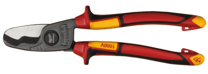 Кабелерез Milwaukee VDE 210мм 4932464563 оснащен изогнутыми губками, которые обеспечивают качественный рез при надежном удержании кабеля без риска выскальзывания.